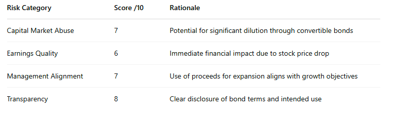 While the funds are earmarked for expansion and debt refinancing, investors should scrutinize the company's ability to generate returns that outweigh the dilution effects. Understanding the strategic rationale behind the timing and structure of the bond issuance is crucial.