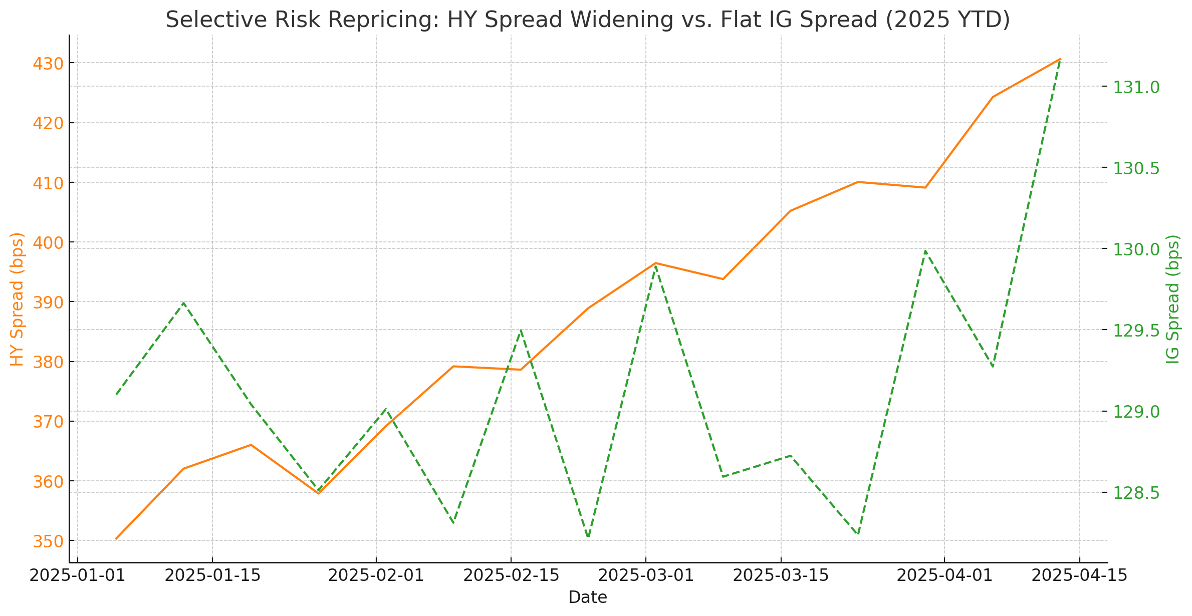 High Yield OAS: Widened to 430bps, a +45bps move in two weeks, reflecting renewed credit stress pricing.