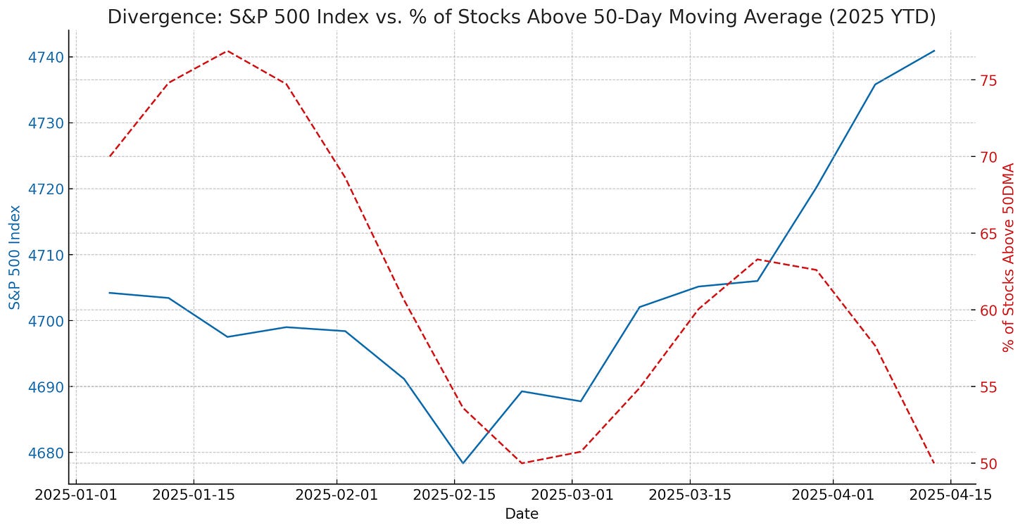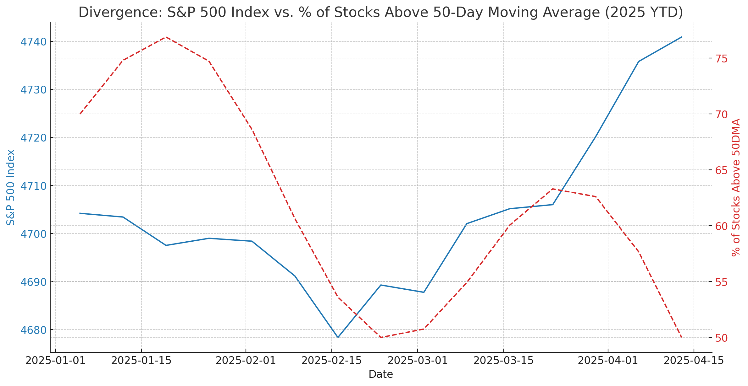 The market narrative entering mid-Q2 2025 is increasingly divergent beneath the surface of headline indices. While the S&P 500 hovers near all-time highs, cracks are emerging across global equity breadth, sovereign bond volatility, and cyclical undercurrents. This week’s report dissects institutional flows, macro dislocations, and silent signals that suggest potential regime change in positioning.